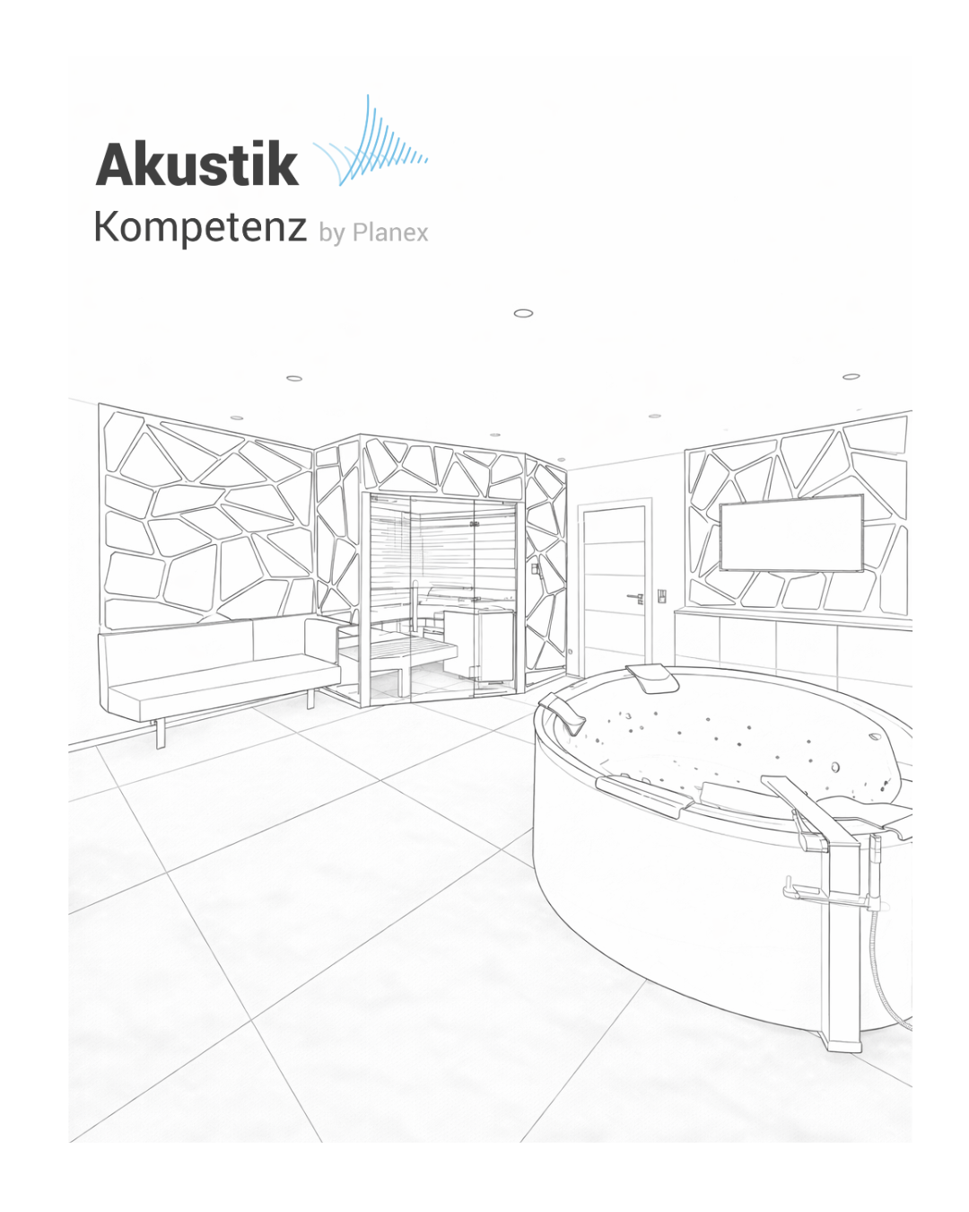 Private Spa- und Wellnessbereiche stellen besonders hohe Anforderungen an Materialien und Raumakustik. Harte Oberflächen wie Fliesen, Glas und Metall führen zu ausgeprägten Schallreflexionen, während Whirlpool-, Dusch- und Dampfanwendungen eine dauerhaft feuchte Raumatmosphäre erzeugen. Klassische Akustiklösungen sind für solche Umgebungen häufig ungeeignet.
